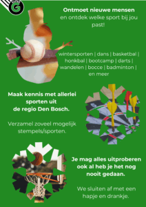 Op zondag 8 maart ’26 organiseren we voor de derde keer samen met Cello, Humanitas, Uniek Sporten ‘s-Hertogenbosch, Sportloket en de Gemeente ‘s-Hertogenbosch en natuurlijk de verenigingen een sportfestival voor mensen met een beperking. De deelnemers worden uitgedaagd om op een laagdrempelige manier een middagje bewegen. Men kan kennismaken met nieuwe sporten en gezellig anderen ontmoeten.
